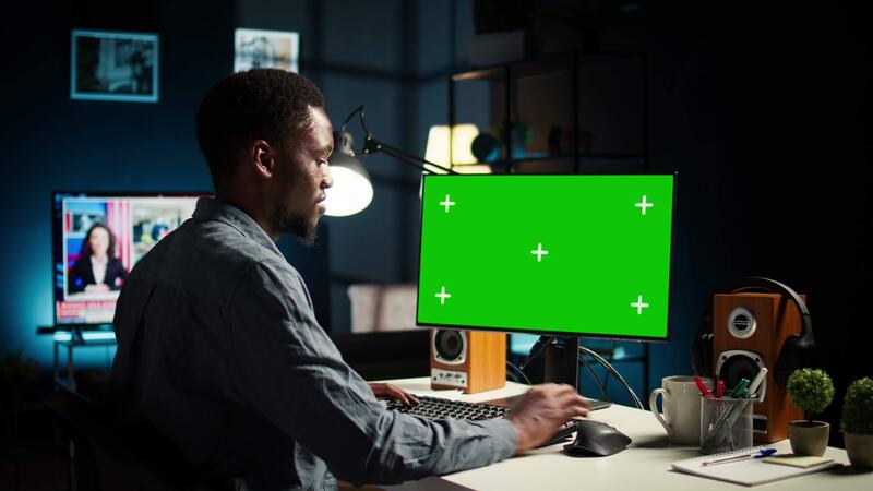 Trading engineer looks at e commerce diagrams and isolated copy space display, working from home to increase profit and obtain funding from shareholders. Expert evaluates statistics. Camera A. Pro Video