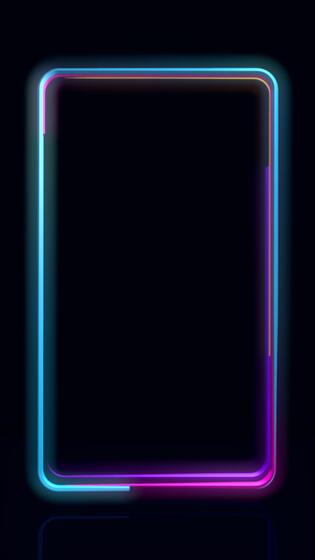 Rectangular frame formed by 4 lines of blue, yellow, magenta and purple moving around the frame on a reflective surface against a black background. Loop sequence. 3D Animation Pro Video