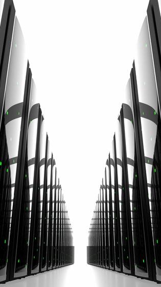 Corridor with Many Server Racks and White Background - View from Below Pro Video