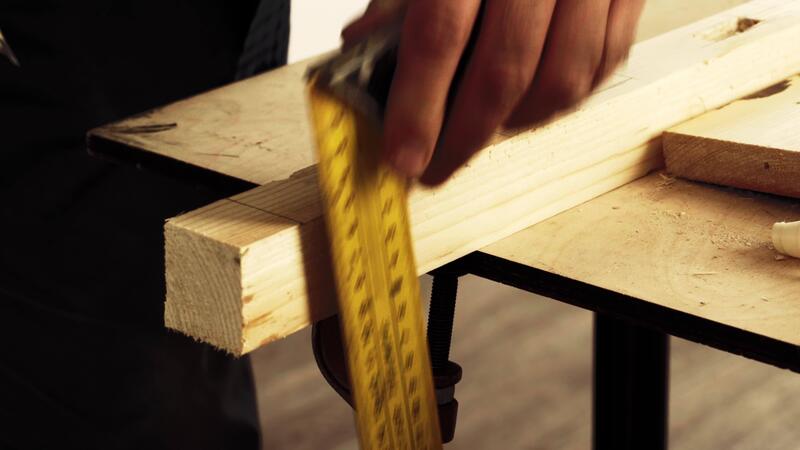 Crafting a precise measurement using tools at a woodworking station in a workshop setting Pro Video