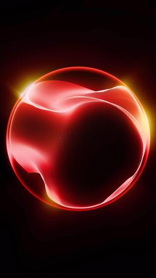 The virtual red ball glows in space, plays with its edges, shimmering with waves of energy. Free Video