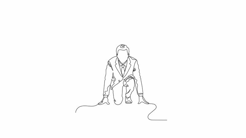 Hand Drawn One Line Animation of a Businessman Preparing to Sprint on a Running Track, Minimalist Line Art Continuous Outline Drawing, Representing Competitive Business Race Challenge Pro Video