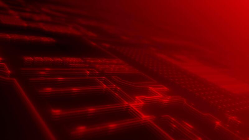 Red color moving glowing hi-tech mother board chip with empty space futuristic sci-fi loop able technology background Free Video