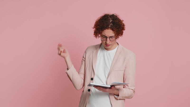 Man making notes writing down thoughts with pen into notepad notebook diary, to do list, good idea Pro Video
