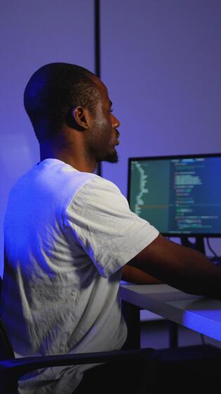 Focused programmer coding on multiple screens at night Pro Video