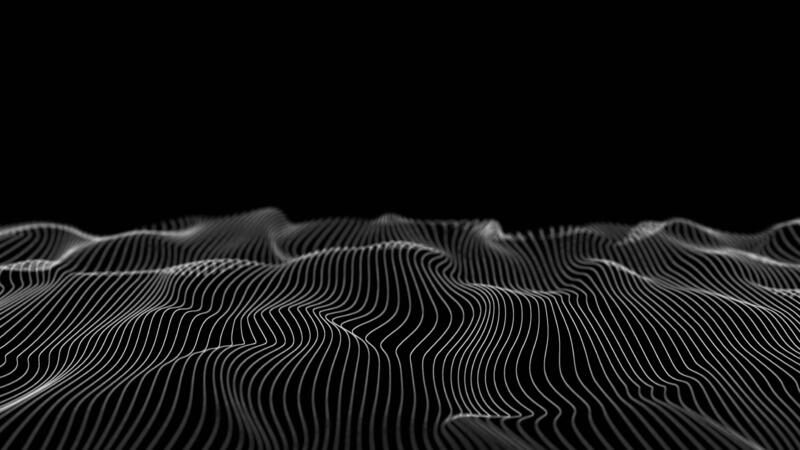 Simple black and white wave space. White linear waves on isolated black background. Abstract White Line Particles wave. Wavy horizon monochrome. Clean visualization white wavy motion. Turbulent loop Pro Video