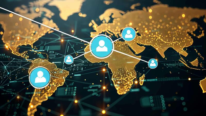 users connecting worldwide through fast internet connection, world map network technology , 3d background with hi tech futuristic world map Pro Video
