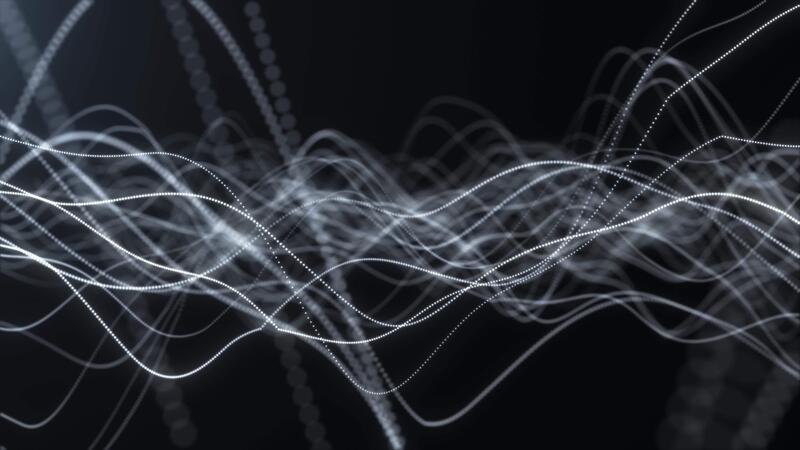 Abstract digital dynamic dark particle waves with light lights motion background, data flow, cyber technology. 3d rendering. Seamless Pro Video