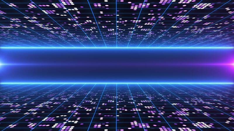 Abstract scene of futuristic cyber world, sci-fi grid or retro wireframe, technology glowing surface, neon night scene, digital science background 4K animation, seamless loop Pro Video