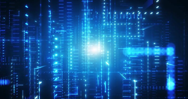 4K digital cyberspace with particles and digital network data connections. Abstract data flow technology, blue digital glowing grid, connection concept, big data, futuristic background, seamless loop Pro Video
