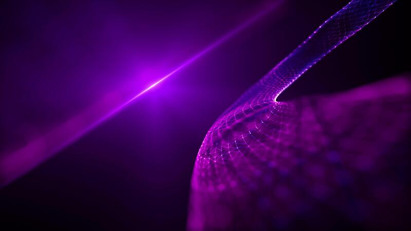Abstract scene of futuristic cyber world, sci-fi grid with wave energy, technological glowing surface, neon night scene with light motion background, data flow, cyber technology. Pro Video