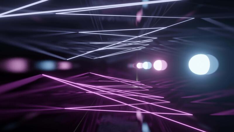 A neon light tunnel with geometric patterns, featuring animated forward movement in a vertical view Pro Video