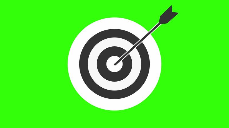 An arrow strikes the center of the target, the precision and focus required to hit the bull's eye, accuracy, strategy, bullseye, and goal-oriented performance. The dartboard on a green screen Pro Video