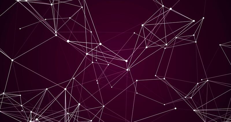 Approaching and moving away from the interweaving of dots and lines on a magenta background. Abstract background for logo animation. Pro Video