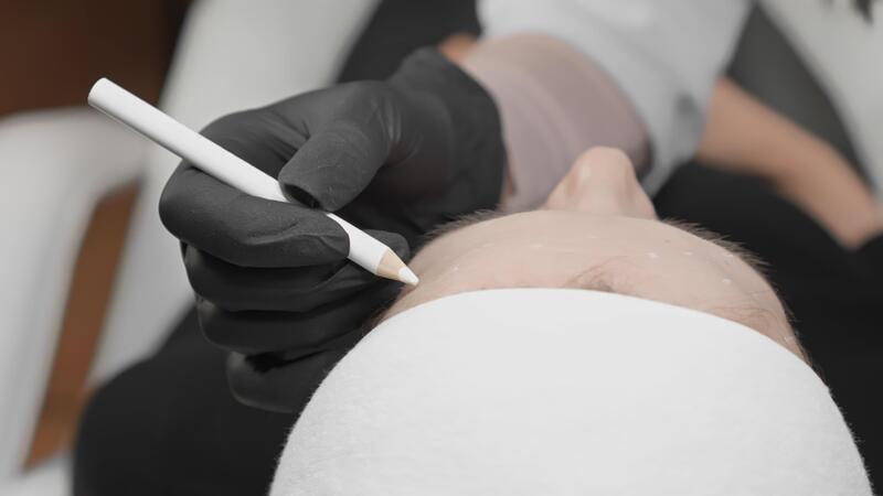An expert practitioner marks the treatment area on the clients forehead, preparing for a precise botulinum injection to effectively reduce wrinkle appearance during a cosmetic procedure Pro Video