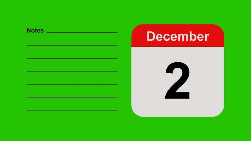 December 2, horizontal Green Screen Calendar Animation with Note Space Free Video