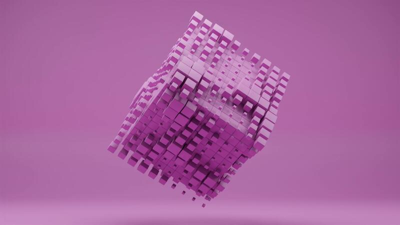 A mesmerizing 3D loop animation featuring a cube composed of smaller cubes, exploding and reforming in a soft, pink hue. Perfect for abstract background or modern tech projects. Free Video