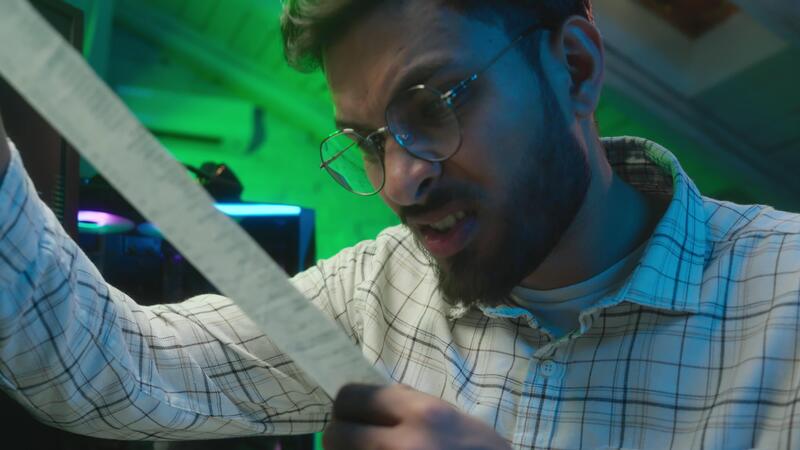 Nervous stressed Arabian Indian man working computer reading checking paper code mistake problem trouble male guy programmer coder worker home broker businessman business trader lost crypto currency Pro Video