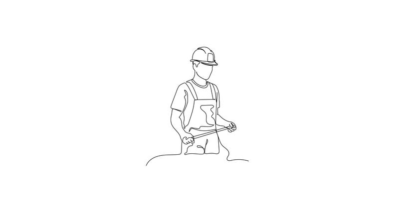 Hand Drawn One Line Animation Of A Construction Worker Measuring Vertical Distance Using A Measuring Tape, Continuous Outline Drawing. Concept of Precision, Construction, and Measurement Work. Pro Video