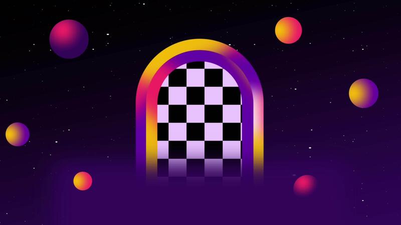 Retro arch frames a checkered pattern in outer space. Retro background animation Pro Video