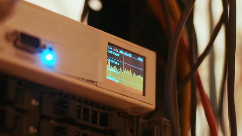 Network switch and ethernet cable in rack cabinet. Network connection technology and has a status LED to show working status. Concept of infrastructure with cables connected to data center 6 Pro Video