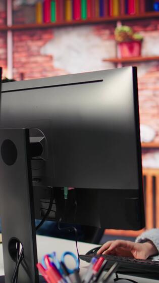 Vertical Teamworking cheerful call center agents tracking shipments in office. Upbeat customer center colleagues use software to locate clients packages and provide status updates, camera B close up Pro Video