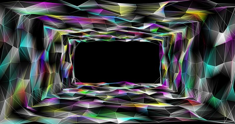 A tunnel of movable translucent iridescent triangular faces. Plexuses. Abstract animation. 21 Free Video