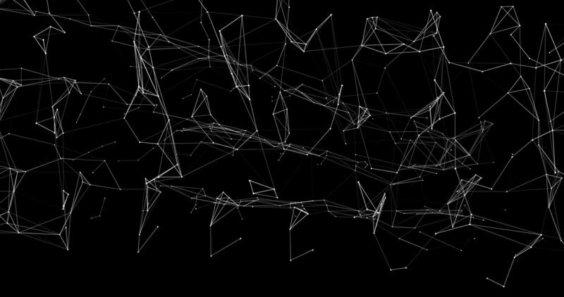 A movable interweaving of dots, lines and triangular faces on a black background. Plexuses. Digital network. Abstract animation. 41 Pro Video