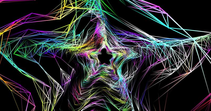 A tunnel of movable translucent iridescent triangular faces. Plexuses. Abstract animation. 1 Pro Video