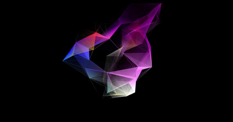 A movable interweaving of dots, lines and triangular faces on a black background. Plexuses. Digital network. Abstract animation. 1 Pro Video