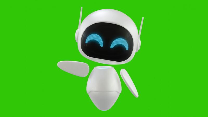 Cute 3D mini Robot character animation with right sideways pointing movement. Green screen background. Perfect looping. Pro Video