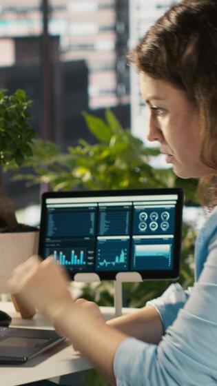 Vertical Employee at office desk getting upset after noticing mistake while editing documents, typing on keyboard. Overworked woman distraught by error committed while inputting data on laptop, camera A Pro Video