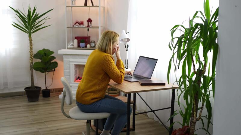 Working from home in a cozy and modern workspace with a touch of greenery and warmth Pro Video