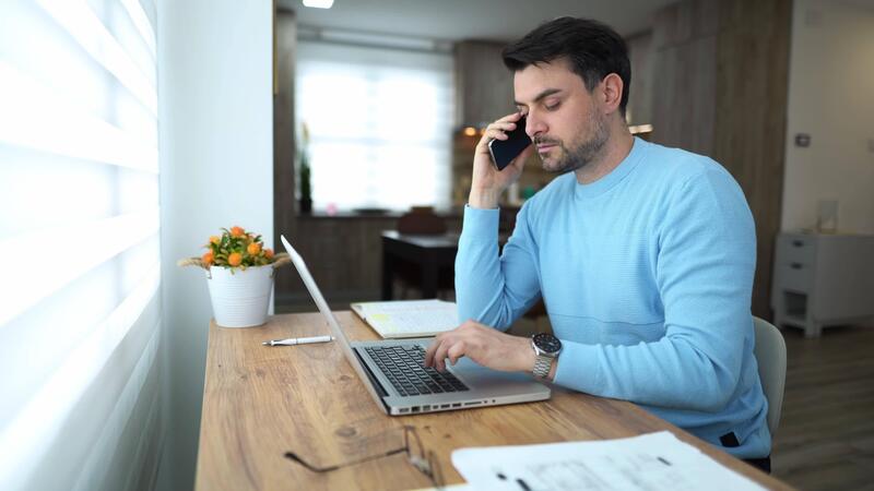 Working remotely in a cozy home office while multitasking with a phone call and laptop usage Pro Video