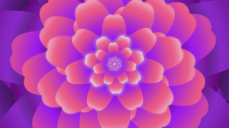 Kaleidoscope of flowers that open with a loop effect in salmon and violet. Pro Video