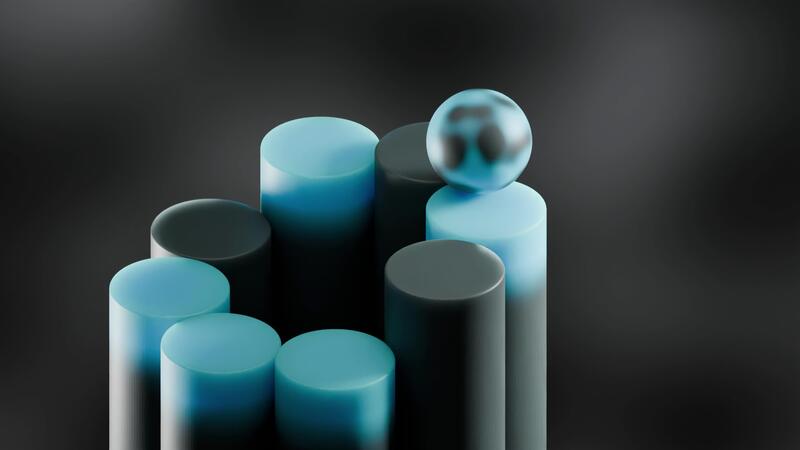 3D Visual with Reactive Pillars Adjusting Based on Sphere Movement. Abstract Blue and Dark Gray Animation of Sphere Rolling over Circular Columns Free Video