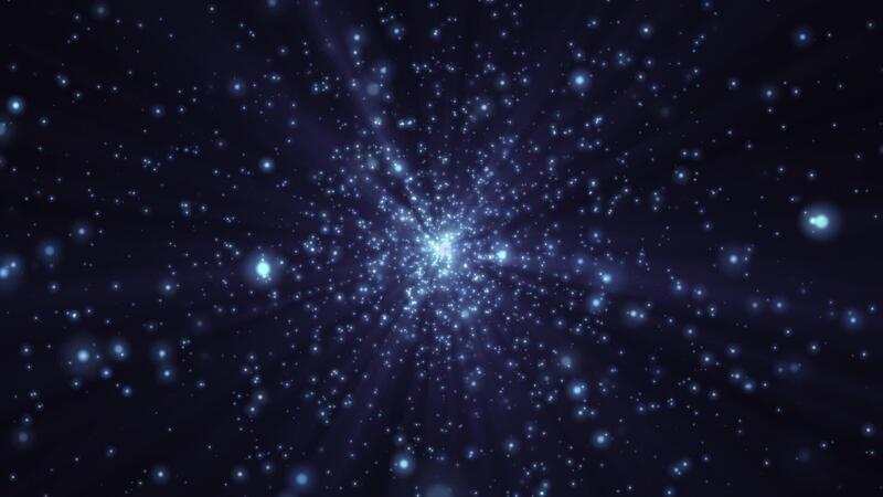 Abstract particle animation with glittering shiny blue particles and shimmering light rays. Glowing stars in space effect. This sparkling motion background animation is full HD and a seamless loop. Free Video