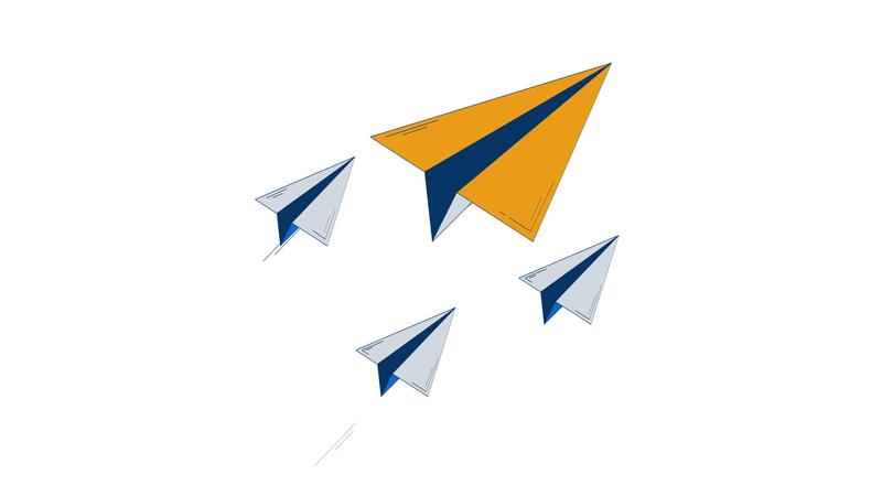 Paper planes flying in forward motion 2D object doodle animation. Message delivery. Mail flight. Business vision animated flat element isolated on white background. Cartoon 4K drawing Pro Video