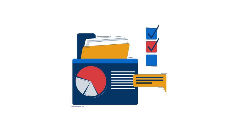 Business dashboard with charts, files and checklist 2D object doodle animation. Piechart, text lines, check boxes animated flat element isolated on white background. Cartoon 4K drawing Pro Video