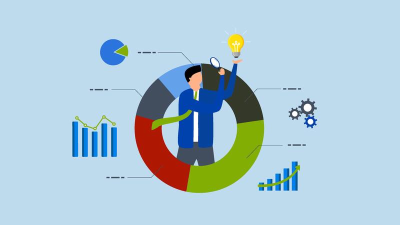 Data scientist analyze data, 4k animation of businessman analyze data with lightbulb. Pro Video