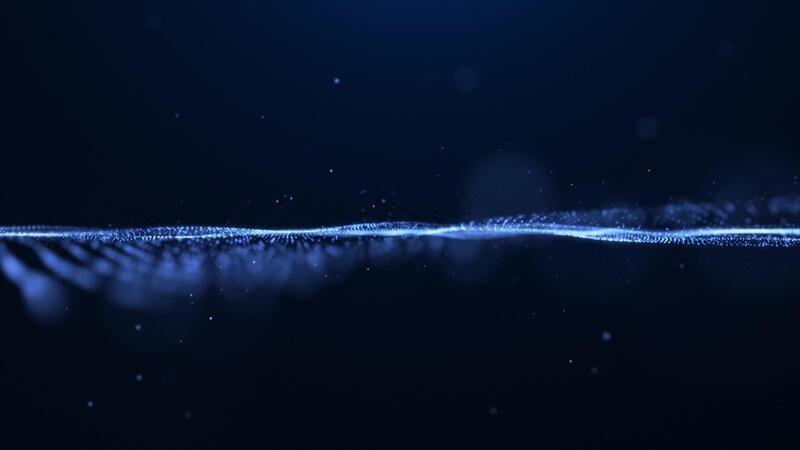 Abstract glowing digital cyberwave particles bright energy surface of dots moving on blue background big data visualization futuristic and tech 3D 4K seamless loop. Pro Video