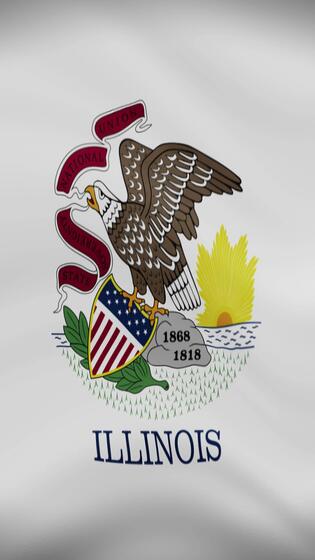 Illinois State Waving Flag in Vertical Orientation. Realistic Flag Animation. Seamless Loop Background. Pro Video