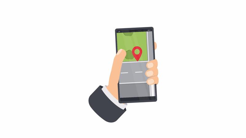 Using a mobile phone for navigation. Location detection. Cartoon animation with alpha channel. Pro Video