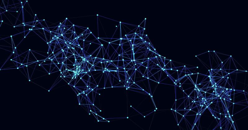 Plexus. Chaotically moving interweaving of dots and lines. Looping seamless animation. Abstract digital network. Pro Video