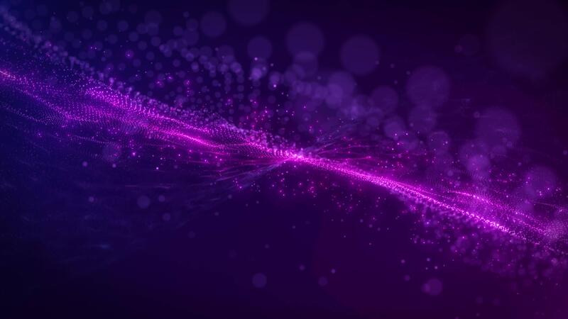 Digital waves from bright glowing particles. Abstract technological background from dots. Futuristic wavy surface of moving multi-colored particles. Big data visualization. Seamless looping 4k . Pro Video