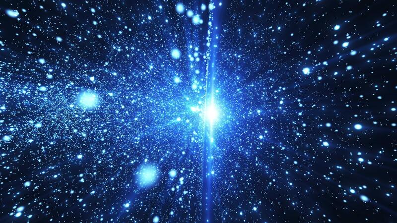 Abstract background of blue particles. Bright shiny background. Glitter dust and beautiful bokeh on dark background. Space background with galaxy and stars. Seamless loop Pro Video