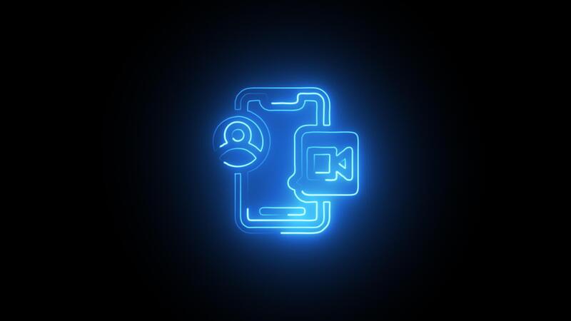 Glowing neon Virtual call user logo icon animation, glowing neon call interface featuring icon animation 4k on black background, with alpha. Pro Video