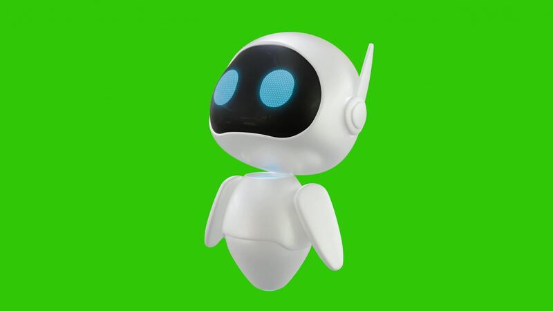 Cute 3D mini Robot character animation With a floating movement in the air. He looked up. Green screen background. Perfect looping. Artificial intelligence virtual assistant robot. Pro Video