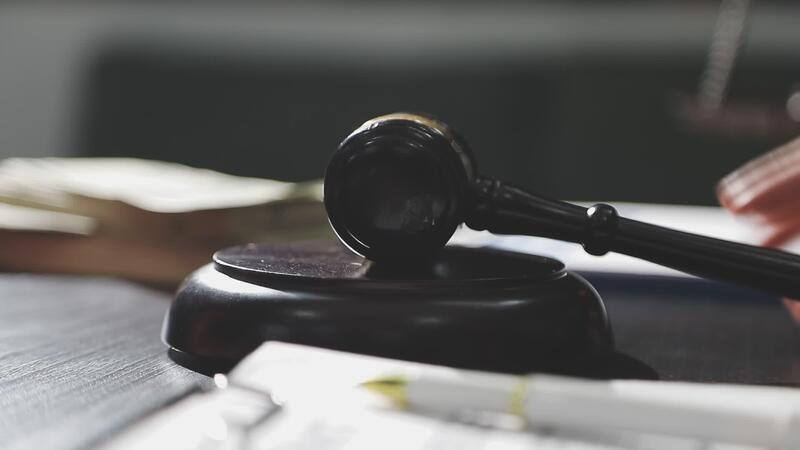 A judge's gavel on a desk with a stack of papers and money Free Video