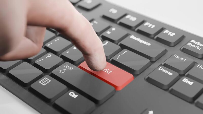 Hand About to Press Red Add Button on Black Keyboard, 3D Keyboard, Red Add Key Animation Free Video